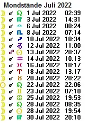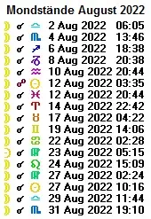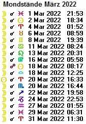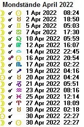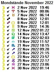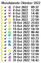 Im Mondkalender sehen Sie, wie der Mond sich durch die Sternzeichen bewegt. Die letzte Spalte gibt die genaue Uhrzeit des Sternzeichenwechsels an. Wenn man sich eine Weile damit beschäftigt wird man feststellen, dass man die Qualitätsunterschiede des Mondes in den verschiedenen Zeichen deutlich spüren kann. Mehr Informationen sehen Sie auch auf meiner Website www.mondkalender.astrologieberatung.net Hier meine Räuchervorschläge für die aktuellen Konstellationen, den kommenden Herbst und die nächsten Monate und Jahre: Empfehlungen